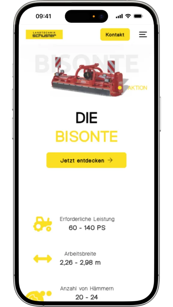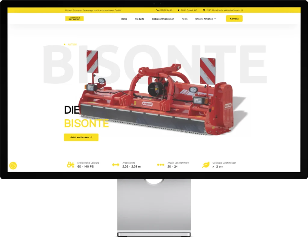 Für das Unternehmen Landtechnik Schuster erstellte ich ein neues Layout für die digitale Produktpräsentation. Das Ziel war es, hochwertige Landmaschinen (wie z.B. von Maschio Gaspardo) nicht nur als Liste von technischen Daten, sondern als visuell ansprechende Erlebniswelt darzustellen.