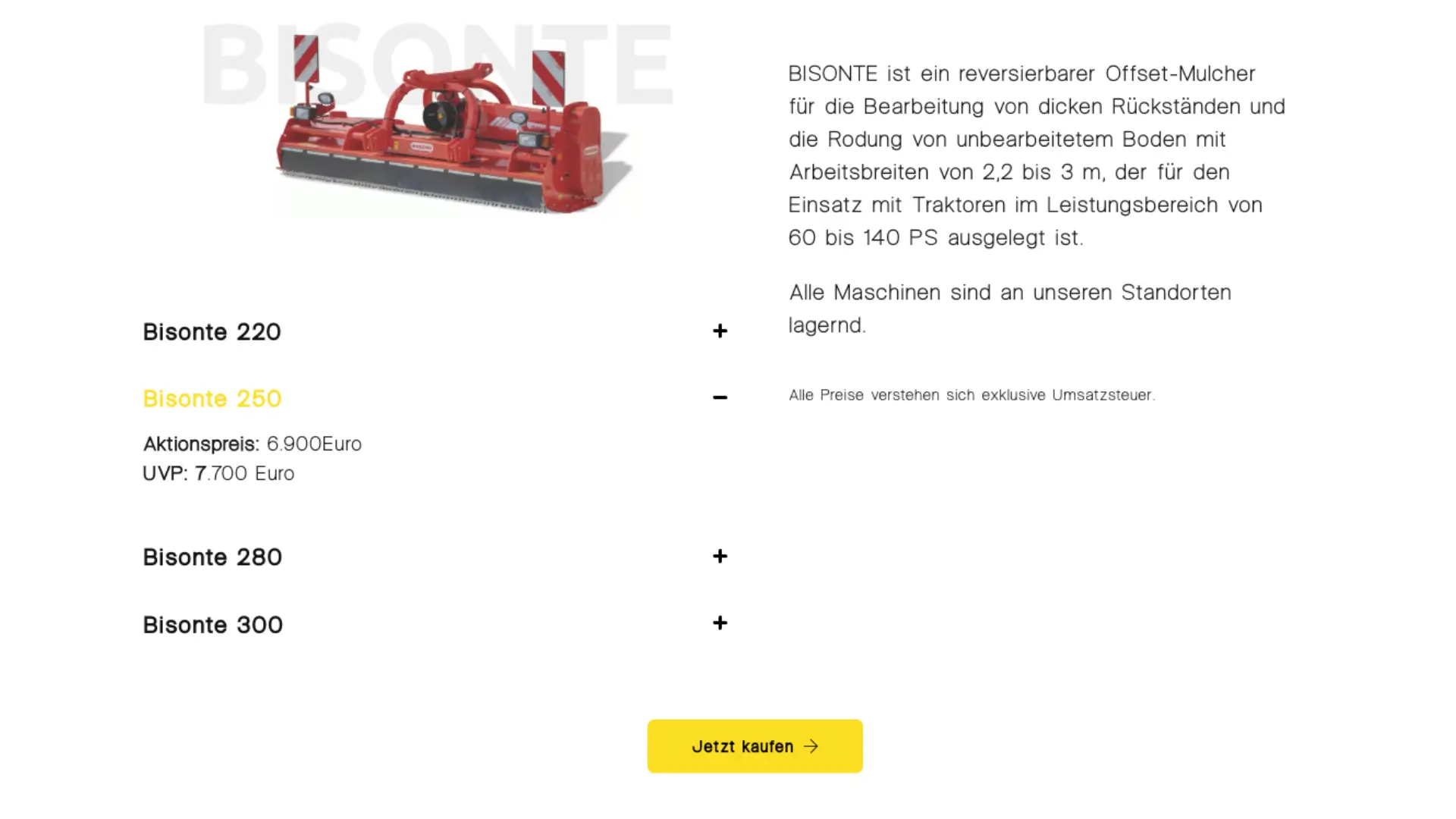 ch entwickelte eine „schöne“, moderne Produktdetailseite, die den Fokus auf visuelle Klarheit legt. Große Bilder und eine klare Typografie rücken die Maschine in den Mittelpunkt. Technische Tabellen und Beschreibungen wurden so integriert, dass sie leicht lesbar sind, ohne das Design zu brechen. Das Ergebnis ist eine hochwertige Präsentationsfläche, die Interessent*innen alle Informationen liefert und gleichzeitig die Wertigkeit der Produkte unterstreicht.